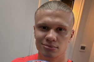 哈兰德社媒晒出比赛用球,队友贝蒂内利在球上面写道:“干得好,你个XX的大‘怪胎’!”